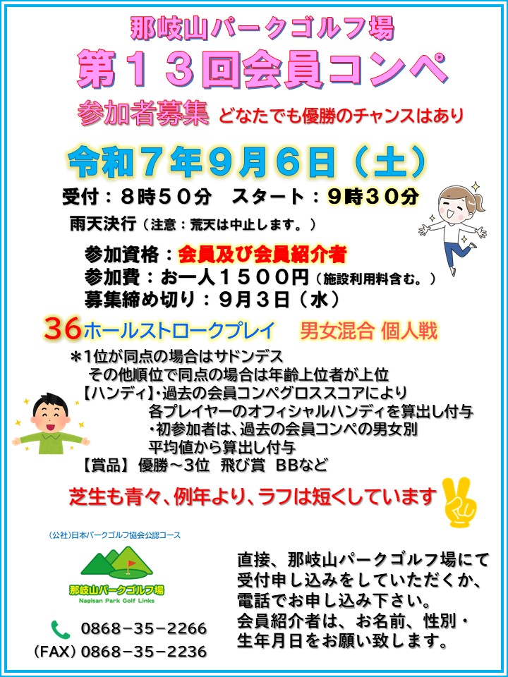 第13回会員コンペ 令和7年9月6日 土曜日 会員及び会員紹介者