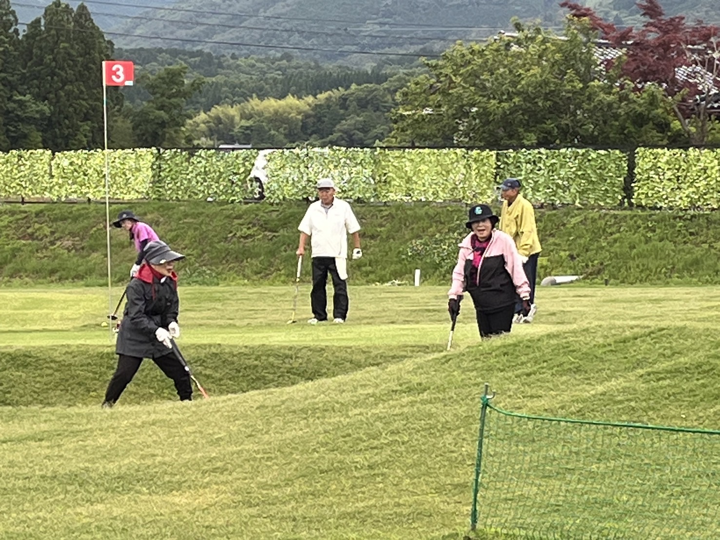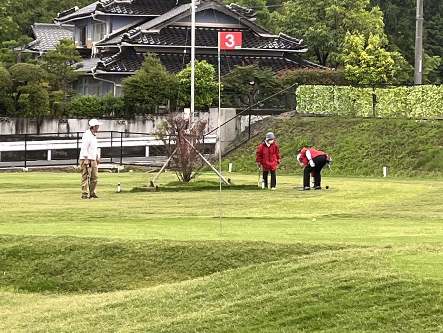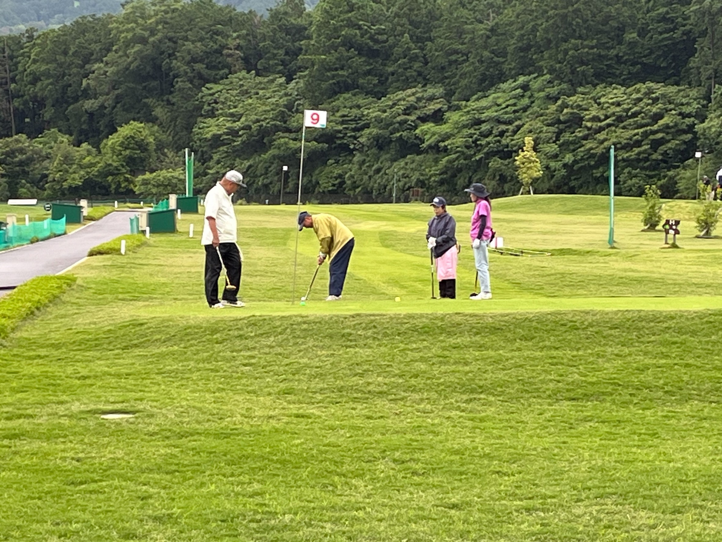 芝生に水滴が付き、難しいコースコンディションとなり、参加された皆様は、悪戦苦闘しておりました。